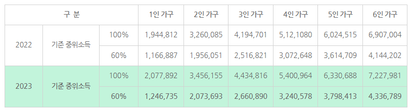 ● 청년 가구 : 기준 중위소득 60% 이하 (2022년 1인 가구 기준 116만 원/월)